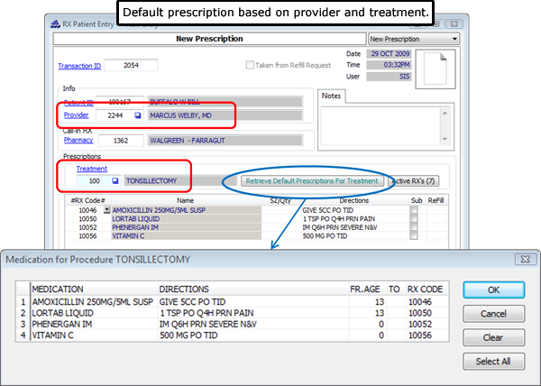 Plus, with GMS/2, it’s easy to create a new prescription. Let GMS/2 assist you with generating a prescription based on the treatment/problem. Then with the click of a button you can print the prescription or fax/email it directly to a local pharmacy.